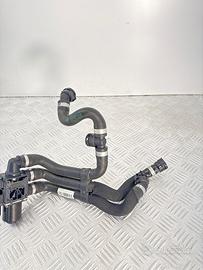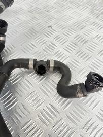 Valvola commutazione liquido raffreddamento con gruppo tubazioni integrato per gestione flusso refrigerante motori Diesel BMW. Sistema composto da elettrovalvola 12V, rete manicotti in EPDM e raccordi rapidi con clip metalliche. Smontato da BMW X5 F15, produzione 06/2015