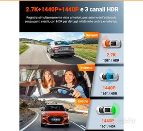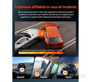 PRODOTTO NUOVO SIGILLATO si accettano permute con prodotti di elettronica e non purché siano sigillati VANTRUE N4S Tripla Dashcam Auto 2.7K+2.5K+2.5K Anteriore Interno Posteriore, 5GHz WiFi GPS Camera Infrarosso, 3 Canuax HDR 360 Gradi, Controllo Vocale Francese, 10s Pre-Registrazione, Max 1 TB DASH CAM 2.7K+2.5K+2.5K/IP67: VANTRUE N4S, la prima dash cam per auto con 3 sensori STARVIS 2, offre immagini nitide per la massima protezione a 360° e cattura ogni scena di guida in dettaglio grazie alle sue 3 lenti F1.8 e al grandangolo 158°+165°+160°. Guarda la telecamera dell'auto in tempo reale sul monitor da 2 pollici. La telecamera posteriore è resistente all'acqua e alla polvere con grado di protezione IP67, progettata specificamente per tutte le auto, ideale per taxi e ride-sharing. 3 STARVIS 2 HDR Platepix VISIONE NOTTURNA: Sentiti tranquillo e al sicuro con la dash cam wireless per auto come passeggero di notte! Dotata di STARVIS 2 IMX675, HDR e 4 LED IR, garantisce immagini nitidissime anche in condizioni di scarsa illuminazione: sia le targhe davanti a te che gli eventi all'interno dell'auto vengono catturati in modo luminoso e chiaro. VANTRUE N4S Dash Cam Auto Anteriore Interno Posteriore: Un must-have consigliato per le compagnie di ride sharing (Uber, Lyft) e taxi! CONNESSIONE WIFI E GPS STABILE - La connessione WiFi ottimizzata di VANTRUE N4S ti consente di controllare la dash cam dall’app iOS/Android. Accedi direttamente all'app VANTRUE per iOS e Android, visualizza percorsi, posizioni, orari e velocità su Google Maps integrato, scarica i momenti importanti (9 MB/s), modificali e condividili e aggiorna il firmware all'ultimo aggiornamento con un solo clic: tutto è sotto il tuo controllo. Funzioni avanzate sempre a portata di mano. Aggiornamenti online e opzioni LTE - Rilevamento migliorato del 50% rispetto a prima, con timer HDR e PlatePix disponibili ecc..ecc....ecc... 70mai dash cam