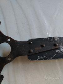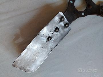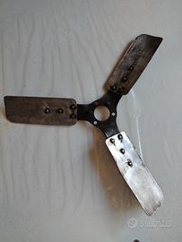 ventola per auto d'epoca con pale in alluminio ribattute ad altre pale in ferro originale. l'oggetto presenta segni di usura. le pale misurano cm. 22x7
