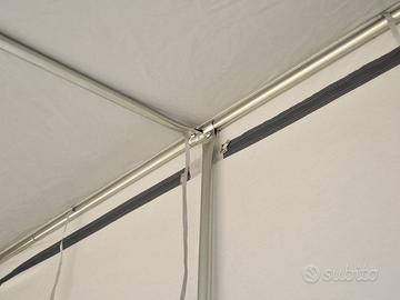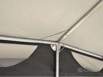 Materiale parete frontale TenCate All Season Touring WR-18 - Materiale telo esterno Poliestere - Materiale tetto PVC - Materiale parete laterale PVC - Paleria Acciaio 25 mm.