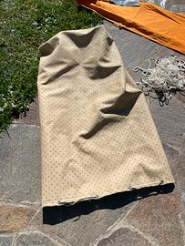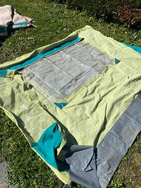 Vendo veranda per roulotte Lander Graziella 401, originale, tenuta in pttime condizioni nella sacca originale, praticamente nuova, usata pochissimo. Senza tubi, ma si possono trovare nei negozi di accessori camper. Composta da tetto, due laterali con finestra con cerniera e zanzariera, due frontali con porta + telo protezione ruote. Prezzo trattabile. Spedizione 30€