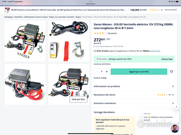 Varan Motors - SC6.0X Verricello elettrico 12V 2721kg 3300W, cavo lunghezza 20 m Ø 7.2mm