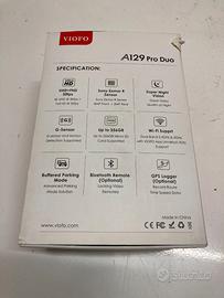 Contenuto nella Confezione telecamera per auto anteriore + posteriore Viofo x1, Cavo della videocamera posteriore (6M) x1, Caricabatteria per auto x1, Mini cavo USB x1, Modulo GPS (base) x1, Adattatore lettore di schede x1, Strumento di rimozione dei bordi x1, Adesivo 3M per montaggio anteriore e posteriore , Adesivi statici (parabrezza) x1, Clips x5, Scheda del salute x1, Manuale Utente x1