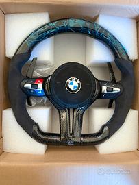 Vendo volante custom Bmw serie F completo di airbag totalmente in carbonio,con palette in carbonio,airbag alcantara e display con contagiri e velocità a colori,il volante è nuovo mai montato, i tasti M1 e M2 sono di colore rosso blu e ai lati il volante anche è in alcantara.