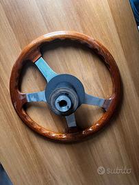 Vendo volante d’epoca in legno e alluminio, completo di mozzo e pulsante centrale. Logo alfa romeo originale.