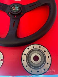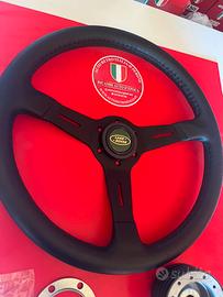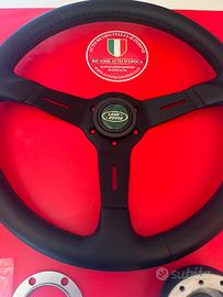 Volante in eco pelle diametro 37 centimetri con razze nere. Ideale per vetture Land Rover completo di kit mozzo e pulsante clacson.