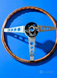 Volante vintage marchio F.I.V. patented made in Italy. Diametro 38 cm ca. Ottimo stato , presenta una minima imperfezione sul metallo vicino al mozzo , vedi tutte le foto. Alluminio e legno. D' epoca.