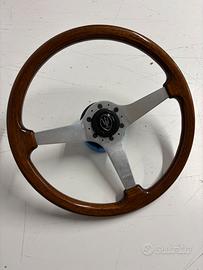 Magnifico volante in legno naturale e razze cromate con mozzo intercambiabile per varie marche ora installato x Maserati serie biturbo clacson centrale stemma Maserati ormai introvabile molto bello e adatto auto classiche tipo Alfa Romeo Fiat BMW