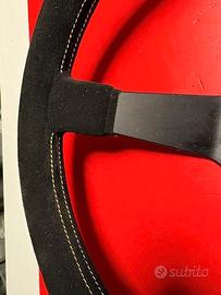 Volante nuovo in scatola. Cuciture giallo chiaro. Scamosciato. 35 centimetri . Disponibile anche il mozzo per tutte le vetture.
