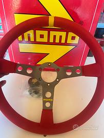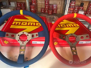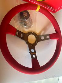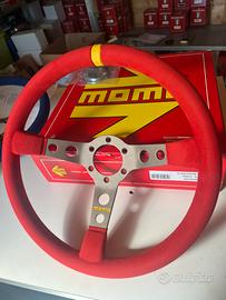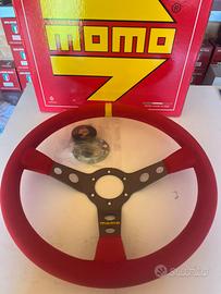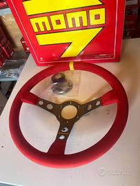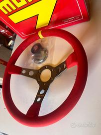 Novità!!! Volante momo mod07 in microfibra rossa. Diametro 35 centimetri.caliciatura 72mm. Disponibilita’ di mozzo per tutte le vetture anche con airbag