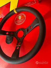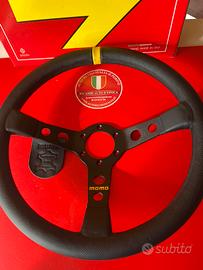 Volante momo mod07 in pelle. Nuovo in scatola completo di pulsante clacson. Certificato di autenticita’. Vasta disponibilita’ di mozzi per tutte le vetture anche con airbag.