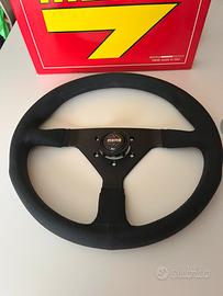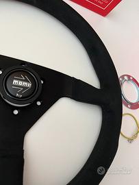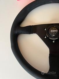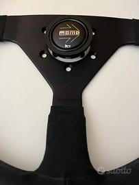 Nuovo volante Momo Montecarlo diametro 35 centimetri in microfibra. Fatto a mano in Italia total black! Completo di pulsante clacson, nuovo in scatola completo.