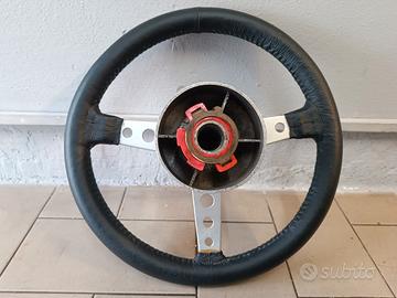 volante sterzo Momo rivestito in pelle modello prototipo diametro 32 cm con mozzo e clacson da mini innocenti inizio anni 70 Momo 1 generazione raro