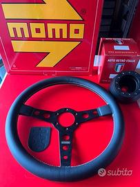 Volante momo prototipo nero diametro 35 nuovo in scatola completo di pulsante clacson , kit mozzo completo per 911,912 e 964