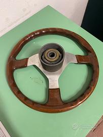 Volante vintage in radica sportivo MOMO. Con mozzo, probabilmente Alfa Romeo. Radica ottima con normali minimi segni del tempo. Alluminio ottimo.