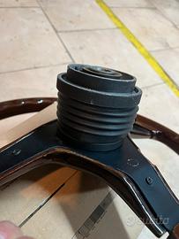 Vendo volante vintage in legno di Mogano finitura lucida rimosso da alfa romeo duetto anno 1990 completo del suo clacson e adattatore/distanziale mozzo posteriore…vero affare!!