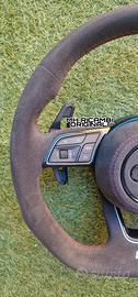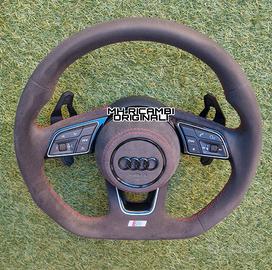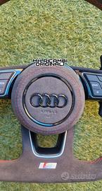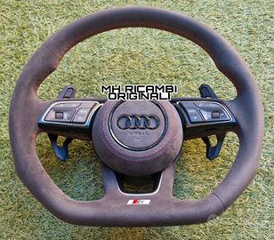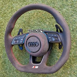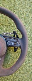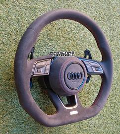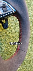 Volante Sterzo Sportivo Piatto Appiattito Tagliato Originale Audi RS Full Alcantara - Alcantara Totale e versione Competition Plus. Cuciture intrecciate a contrasto Rosse.