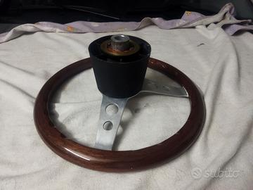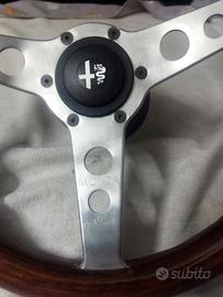 Come da titolo, Volante in lega alluminio e legno anni 70' diametro cm. 32 completo di mozzo. Montava su Alfa GT ed Alfetta GTV