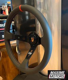 Volante OMP CORSICA PORSCHE in pelle liscia, cuciture e mirino rossi, diametro 35cm, caliciatura 95mm.