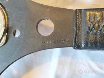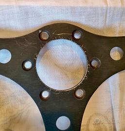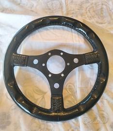 Cedo volante RAID, a tre razze, corpo in alluminio, corona rivestita in resina poliuretanica, diametro esterno 31,5 cm, impugnatura 33 mm. Sei 6 fori per il il mozzo, diametro 6mm, interasse tra i fori 35mm. Ottimo stato!