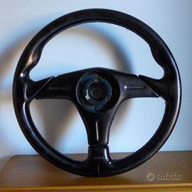 Volante Sportivo Nardi in Pelle Completo di Mozzo Fiat, il Ricambio proviene da una Fiat 500 Sporting, con elevata probabilità compatibile con altre autovetture Fiat o Lancia, oppure dotandosi di idoneo mozzo con altre autovetture di Marchi Diversi.