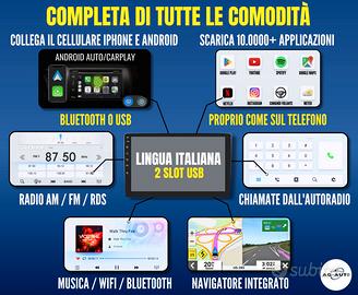 Libera la plancia dai supporti per telefoni e trasforma la tua Volkswagen in un’auto del 2026. AUTORADIO ANDROID 2DIN SPECIFICA PER: ▪️ Volkswagen Golf 7 o mk7 dal 2013 al 2017 Collega iPhone o Android e porta direttamente nel cruscotto: 📍 Google Maps e Waze 🎵 Musica sull'autoradio o su Spotify 📺 YouTube e Netflix Tutto su un elegante schermo Touch IPS da 10 pollici con Android auto e Apple Carplay integrati. 👉 Disponibile su: WWW.AG-AUTOSHOP.IT Contattaci sul sito ufficiale, scopri le foto del montaggio e le recensioni dei nostri clienti. 📦 CONSEGNA IN 1/3 GIORNI ✔️ COMPATIBILITÀ GARANTITA Affidati ai professionisti. Dopo l'acquisto ti contatteremo per verificare la compatibilità e fornirti il kit completo d’installazione specifico per il tuo anno d'immatricolazione e allestimento. Sistema Plug&Play AG-AUTO per un montaggio semplice e in autonomia (cavi etichettati e manuale in italiano). VERSIONI: 🚀 ULTRA 4/64gb = 244€ 💎 PRO+ 2/64gb = 214€ ✅ PRO 2/32gb = 199€ ⚪️ Standard 1/32gb = 189€ 🛡️ ACQUISTARE DA AG-AUTO INCLUDE: 2 anni di garanzia e 14 giorni di reso gratuito. Pagamento in 3/4 rate SENZA INTERESSI con PayPal o Klarna. SCHEDA TECNICA: Nuova versione 2026 con sistema UI Android 15. Logo all'accensione, recupero comandi al volante e informazioni di bordo mantenute. Cavo sotto chiave incluso per non scaricare la batteria. Smartphone: Apple CarPlay e Android Auto (cavo o Bluetooth). App: Google Play Store per scaricare ogni app (Spotify, YouTube, ecc.), WiFi, 2 prese USB e microfono integrato. Navigazione: Antenna GPS inclusa per mappe online/offline. Audio: Suono HiFi AG-Auto con amplificatore, DSP (da versione PRO+), uscite RCA e AUX. 📩 CONTATTACI: infoagautoshop@gmail.com o visita AG-AUTOSHOP.IT Tag: Stereo Touch Radio Touchscreen Navigatore GPS CarPlay Monitor Display Sistema multimediale Head Unit 2 din full HD 2013 2014 2015 2016 2017