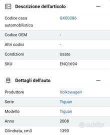 Vendo COLLETTORE ASPIRAZIONE in buono stato, come da foto, per TIGUAN 1.4 TSI BENZINA del 2008. Codice articolo GK00286. Il costo, compresa la spedizione in Italia, è di €. 90,00.