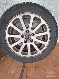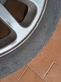 gomme invernali installate oramai esauste ma cerchi in sufficienti condizioni per essere utilizzati per gommature di emergenza o di ricambio.
