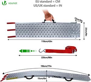 RAMPA DI CARICAMENTO DI ALTA QUALITÀ: La rampa di caricamento misura 196 x 22 x 4 cm e 110 x 22 x 12 cm ripiegata. Realizzate in metallo zincato, sono progettate per resistere alla ruggine e offrire una maggiore durata. Ideali per l'uso in diverse condizioni, le nostre rampe sono una soluzione affidabile e durevole per il caricamento.