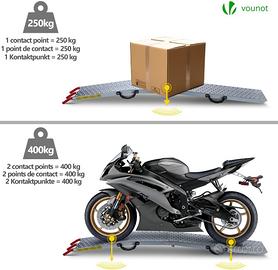 GRANDE CAPACITÀ DI CARICO: La nostra rampa per moto non è pesante, ma ha una capacità di carico molto elevata. Ogni rampa può supportare un carico di 400 kg, due rampe possono contenere fino a 800 kg. Possono essere utilizzate singolarmente o in coppia a seconda delle esigenze.