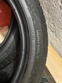 Vendo questi copertoni smontanti da una fiesta a circa 12000 kilometri, vendo per inutilizzo, e per scelta estetica li ho tolti. Come si nota dalle foto entrambi i copertoni presentano un taglio, e una di esse è stata riparata causa foratura, riparazione perfetta in quanto è da 4 anni che le uso( ovviamente con pochi kilometri). Smontati da una ford fiesta st line 2019. Prezzo trattabile