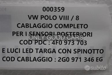 Cablaggio completo con 4 PDC (sensori di parcheggio ) e luci led targa con spinotto del paraurti posteriore per VW POLO VIII / 8 .