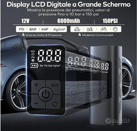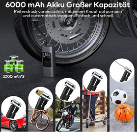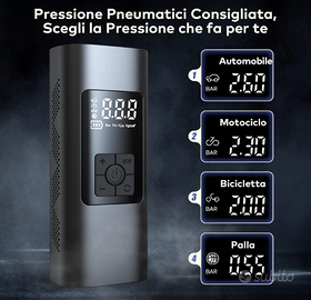Wistrue 6000mAh Mini Compressore Aria Portatile 150PSI Gonfiatore Elettrico con Batteria Ricaricabile, Schermo LCD Digitale, Pompa per Bicicletta, Auto, Moto, monopattino, Palloni 🚲【Mini Portatile e Capacità super Grande】 La pompa bicicletta elettrica ha una batteria incorporata di super capacità da 6000 mAh, dotata di interfaccia di tipo C e cavo di alimentazione dell'interfaccia del veicolo, che può essere ricaricata comodamente e rapidamente, è la più piccola aria intelligente pompa e può ottenere il miglior tocco della mano, la dimensione è di soli 17x6,9x5 cm. Prima del gonfiaggio, tirare verso il basso il morsetto della valvola per bloccarlo. 🏍【Gonfiaggio Automatico Multifunzione】 Devi solo impostare la pressione desiderata, quando viene raggiunto il valore della pressione dell'aria, la Air Pump interromperà automaticamente il gonfiaggio per evitare il sovraccarico. 4 tipi di valori unitari tra cui scegliere: PSI, BAR, KPA, Kg/cm². La pressione massima di gonfiaggio è di 150 PSI. Si consiglia di caricare completamente la pompa dell'aria prima dell'uso e serrare il tubo di gonfiaggio rimovibile per evitare perdite d'aria. 🚗【Gonfiatore per pneumatici con Schermo LCD】 La pompa per bicicletta elettrica ha un ampio display LCD digitale, più chiaro e luminoso. Che non solo può gonfiare la tua auto, ma anche caricare il tuo cellulare. Questa pompa di gonfiaggio pneumatici wireless ha anche una funzione SOS e illuminazione per assisterti in situazioni di emergenza. Si consiglia di attendere almeno 15 minuti dopo ogni utilizzo dopo il raffreddamento, quindi continuare a utilizzare. 🏀【Usi Multipli】 Questa compressore a batteria è dotata di 2 diversi ugelli aggiuntivi. Adatto per auto, moto, biciclette, palloni da basket, palloni da calcio, ecc. Il prodotto ha sia funzionalità che estetica. Nota: i nostri prodotti non sono adatti per gonfiare palloncini e kayak. ⚽【Contenuto Della Confezione e Buon Servizio Post-vendita】 1 * pompa Aria elettrica portatile, 1 * Tubo g