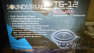 2 Woofer Soundsteam Tarantola T6 da 12", 300 cm, doppia bobina da 4 uhm, potenza dinamica 500 watt rms a bobina.