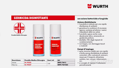 WURTH POLAR ICE DISINFETTANTE IGIENIZZANTE ANTIBA