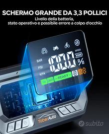 YaberAuto Avviatore Batteria Auto 7000A 26800mAh con Compressore 160PSI Uscita DC 160W, PD65W Booster Avviamento,Avviatore Emergenza per Auto (Tutto Gas/12.0L Diesel), 600 Lumens