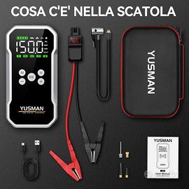 YUSMAN Pacco batteria (1 * avviatore di emergenza con compressore d'aria, 1 * cavi jumper intelligenti, 1 * tubo della pompa dell'aria, 4 * ugelli del gas, 1 *