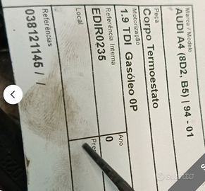 038121145 Flangia Termostato sistema pre-riscaldamento elettrico del motore AUDI A4 (8D2 B5) 1.9 TDI 1994 candelette perfettamente funzionanti. Disponibile spedizione