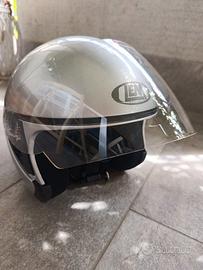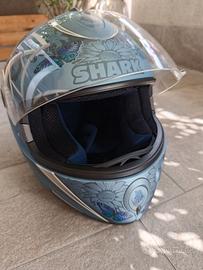 2 caschi: 1) Casco integrale SHARK azzurro con farfalle ; 2) casco LEM semi integrale, metà anni 2000, entrambi con loro custodia, praticamente nuovi, quasi mai usati