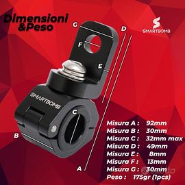 La linea FLIPbracket è pensata per offrire una soluzione professionale al montaggio di faretti supplementari per moto, compatibili con tubolari dal diametro di 22mm fino a 33mm grazie agli anelli gommati pretagliati inclusi. Senza l’utilizzo delle guarnizioni, è possibile arrivare fino a 39mm di diametro. (serie L4-L5-L6 , La serie l7 è pensata per tubolari fino a 53mm) Queste staffe di fissaggio per fari aggiuntivi sono progettate con estrema precisione, con alla qualità costruttiva, robustezza e resistenza nel tempo. Sono realizzate in alluminio pieno T6, lavorato dal pieno e rifinito con un trattamento di ossidazione anodica, per garantire una resistenza superiore a vibrazioni, urti e condizioni estreme. Grazie alle guarnizioni anti-vibrazione fornite, il montaggio risulta stabile e sicuro. Il pratico sistema a flip da un lato, abbinato a una chiusura a vite sull’altro, permette un fissaggio solido e allo stesso tempo facilmente regolabile. Sono disponibili queste staffe : L4 : fissaggio faretti in modo standard per sez da 22 a 39mm L5 : fissaggio faretti con asola regolabile a 360° per sez da 22 a 39mm L6 : fissaggio faretti con asola regolabile a 360° con misure compatte per sez da 22 a 35mm L7 : fissaggio faretti con asta lunga 7cm regolabile per sez da 38 a 53mm Differenza rispetto alle staffe in commercio : Durata decennale. Testati ad una velocità di 190km/h senza nessun segno di cedimento di posizionamento. Rotture strutturali assenti (utilizzo off-road). Verniciatura antiruggine garantita. Composizione leggera ma robusta. Intelligenza di fissaggio rapido e facilitato a FLIP. Viteria acciaio inox. Guarnizioni antivibrazioni di diverso spessore antispaccature. Garanzia e Allestimento ITALIANA Smartbomb. Prezzo : 99€ il kit comprende : 2 STAFFE 4 GUARNIZIONI VITERIA ACCIAIO INOX BRUGOLA FISSAGGIO