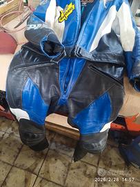 Per inutilizzo vendo una coppia di tute in pelle ancora sane anche nelle cerniere, ognuna in 2 pezzi e entrambe con le protezioni sia alle ginocchia che nei gomiti.