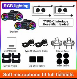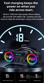 INTERFONO BLUETOOTH MOTO Y13 PRO – 500 m | FM | RGB | USB-C 💥 NUOVO – QUALITÀ PREMIUM – SPEDIZIONE VELOCE 💥 Interfono Bluetooth Y13 Pro per casco moto, ideale per comunicare durante la guida, ascoltare musica o rispondere alle chiamate in totale sicurezza. Design moderno con luci RGB, audio chiaro e batteria di lunga durata. ⸻ ✅ CARATTERISTICHE PRINCIPALI ✔ Intercom fino a 500 metri – Comunicazione diretta tra due motociclisti ✔ Bluetooth 6.0 – Connessione stabile e veloce con smartphone e altri dispositivi ✔ Chiamate Hands-Free – Rispondi alle chiamate senza togliere le mani dal manubrio ✔ Radio FM integrata – Ascolta le tue stazioni preferite ✔ Riduzione del rumore – Audio più pulito anche ad alta velocità ✔ Luci RGB decorative – Look moderno e accattivante ✔ Batteria a lunga durata (~1000 mAh) ✔ Ricarica USB-C – Più veloce e pratica ✔ Compatibile con caschi: integrali, modulari, jet e off-road