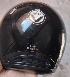 Casco Vemar per moto nero di tipo aperto, taglia L per testa grande (59cm); Casco usato pochissimo, imbottitura praticamente nuova, la visiera presenta un graffio, forse dovuto a caduta accidentale del casco, ma fuori del campo visivo. 25€