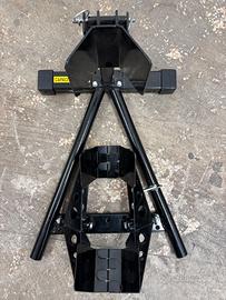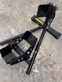 Il cavalletto é fisso e stabile per la ruota anteriore, ha una portata elevata, fino a 680 kg., ed è predisposto per il fissaggio a un carrello appendice o entro un furgone.