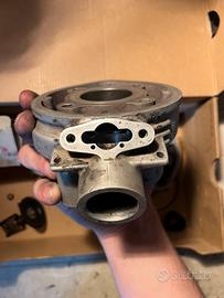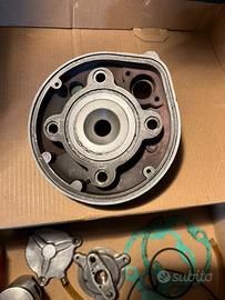 Come da titolo vedo un gruppo termico athena 50 (alesaggio 40.3mm e corsa 39mm, come il cilindro originale) con valvola di scarico pneumatica. Il gruppo termico è completo ed è in perfette condizioni come si può vedere dalle foto. Questo gruppo termico costa 400€ da nuovo e viene utilizzato nelle competizioni di enduro 50cc dove la cilindrata non può superare i 50cm^3, è progettato e sviluppato come qualsiasi altro cilindro da gara e si distingue dagli altri grazie alla sua valvola di scarico (unico cilindro insieme all’80 athena per am6 che ha la valvola di scarico) che lo rende molto piu coppioso e allo stesso tempo lo si può estremizzare ancor di piu degli altri cilindri senza perdere troppo in basso. È un cilindro rarissimo da trovare (soprattutto completo e in queste condizioni) soprattutto a questo prezzo. Se configurato bene (giusta messa a punto, giuste componenti e buone lavorazioni) riesce benissimo a superare i 15cv (su youtube ci sono video di bancate dove ne tirano fuori 18) mantenendo lo stesso un ottima affidabilità rispetto ad un cilindro in ghisa, anche essendo in alluminio ed avendo un pistone monofascia. Il gruppo termico è completo anche di guarnizioni, ma che consiglio di cambiare lo stesso (costano esagerando 15€). Per altre foto o informazioni non esitate a contattarmi. Spedizione disponibile.