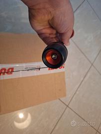 Slider forcella anteriore Ducati Performance, rosso/nero. Oltre a svolgere una funzione di salvaguardia per la forcella, la finitura a macchina aggiunge un elemento di stile che arricchisce l’avantreno della moto. Prodotto in collaborazione con Rizoma. Prodotto pari al nuovo, usato per pochissimi km