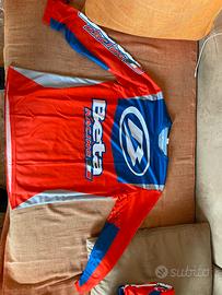 Completo trial Beta trual Team factory , maglia pantalone e maglia piu’ pesante , ginocchiere , gomitiere , guanti , e marsupio Hebo , tutto come nuovo messo due volte , venfo x prematura cessata attivita , taglie M , il pantaline d elesticizzato , le maglie vestino piuttosto largo , x altre info cintattatemi , preferisco vendere in blocco , ma dvdntualmdnte posso smembrare.Sherco/Beta/GasGas
