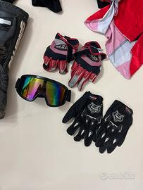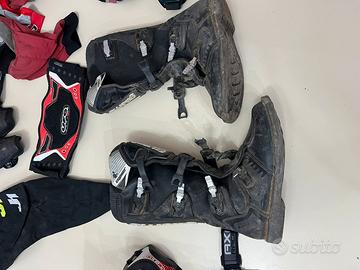 Vendo due completini, due caschi(uno di qualità scarsa), protezione Cross, enduro tutte!, Stivali, marsupio, borraccia, guanti, occhiali, giubbotto
