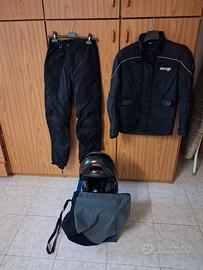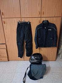 Pantaloni con antivento 2 strati, giacca con imbottitura termica 2 strati, casco BMW , tutto taglia S.