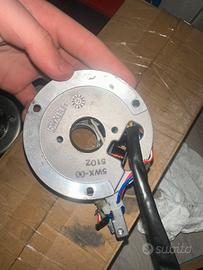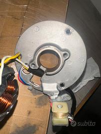 vendo accensilne originale am6 12 poli perfettamente funzionante con statore nuovo di pacca. insieme do anche la chiavetta da montare sull’albero motore e il suo dado per fissarla.